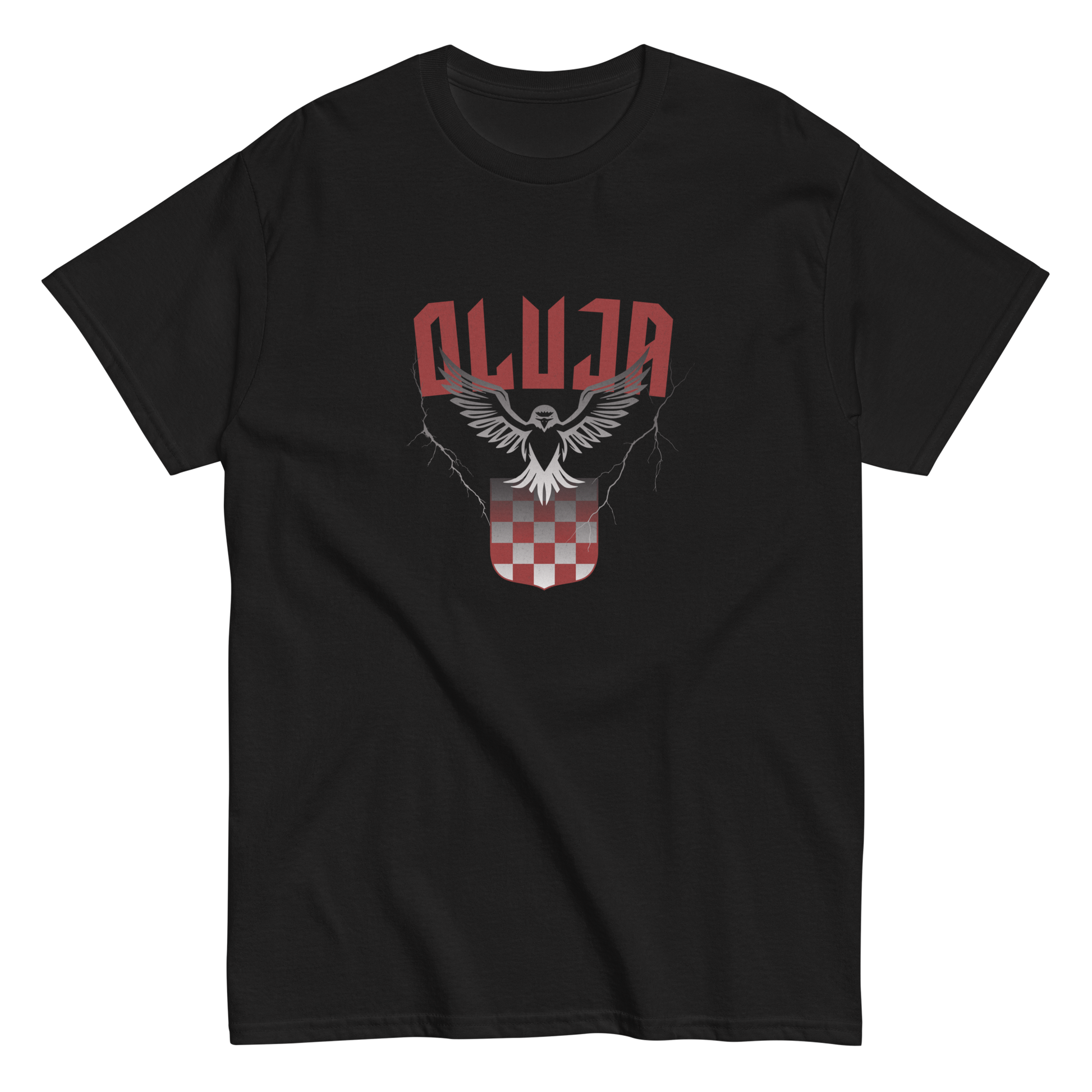 Sokol - Majica s motivom sokola, hrvatskog grba i natpisom "Oluja". Dizajn posvećen hrvatskim braniteljima i povijesnoj pobjedi – za one koji nose domoljublje u srcu. ❤️🤍💙